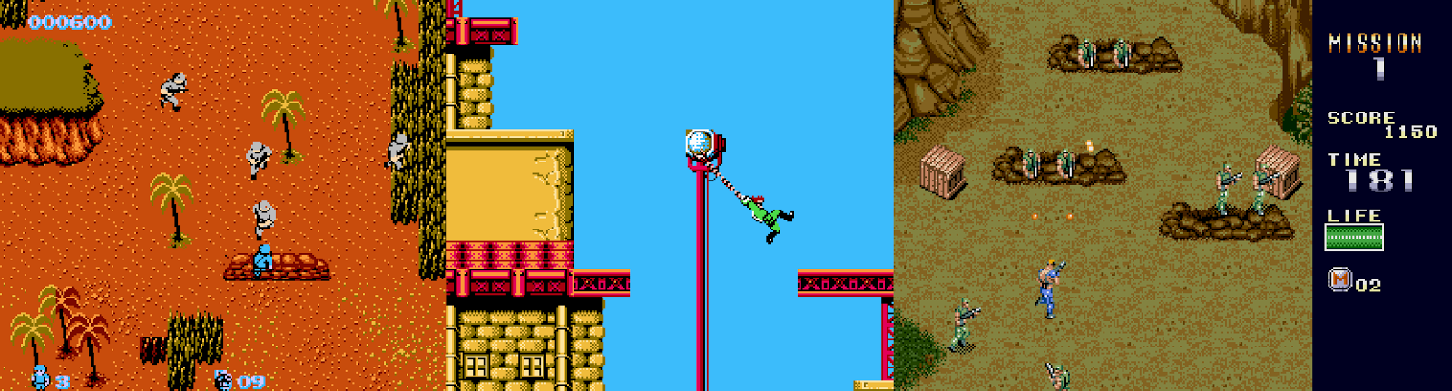 | Commando (NES) / Bionic Commando (NES) / Mercs (Genesis) |